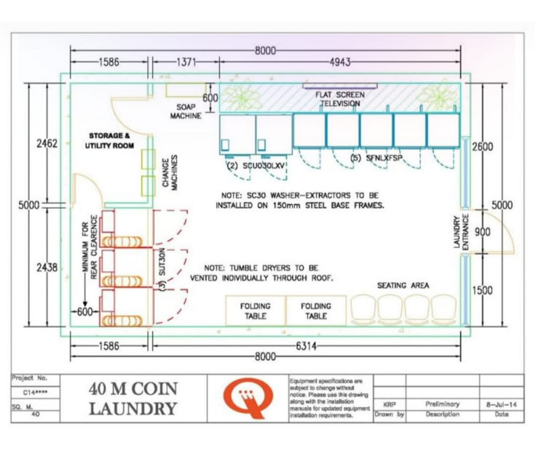 disposición de equipos o puesta en marcha de lavaderos comerciales o institucionales.